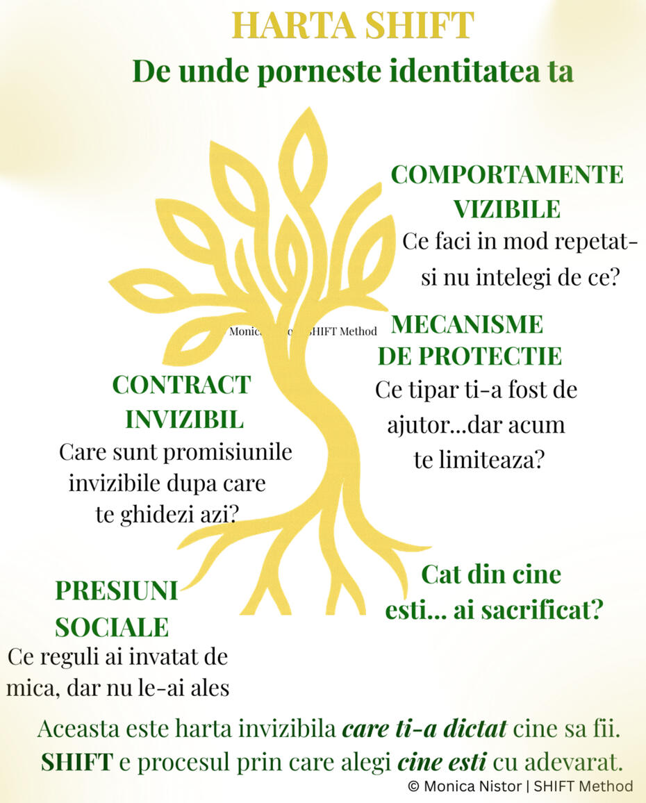 Sunt firele unei hărți mai mari, care arată cum se leagă între ele toate acele reguli și tipare invizibile.Așa se conturează Harta SHIFT — imaginea completă a felului în care ai ajuns cine ești: